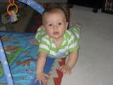 He's just lovely, thanks! Went from being just cute to being also really giggly and fun to play with. These days, he thinks a bouncing ball is the bees knees. He's 5 1/2 months, and will start real food soon, so my cow days are slowly coming to an an end.
