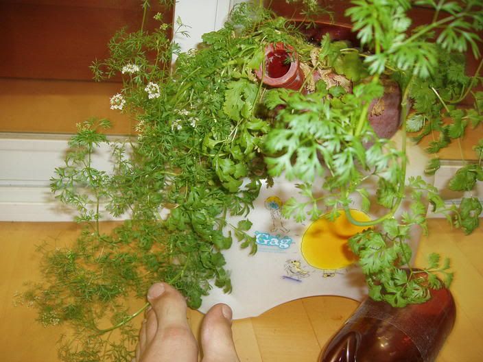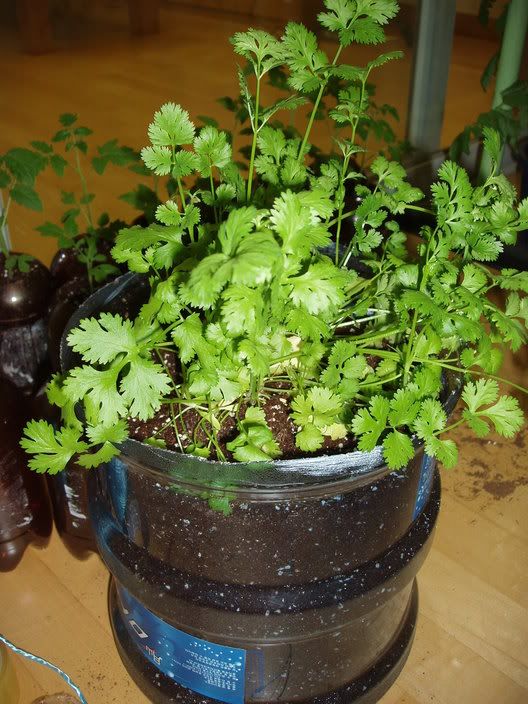 I haven't seen cilantro seeds here (doesn't mean there aren't any, I just haven't found them in Daegu.) Mine were given to me by a neighbor. Cilantro is not real happy being transplanted, but basil does really well. |
