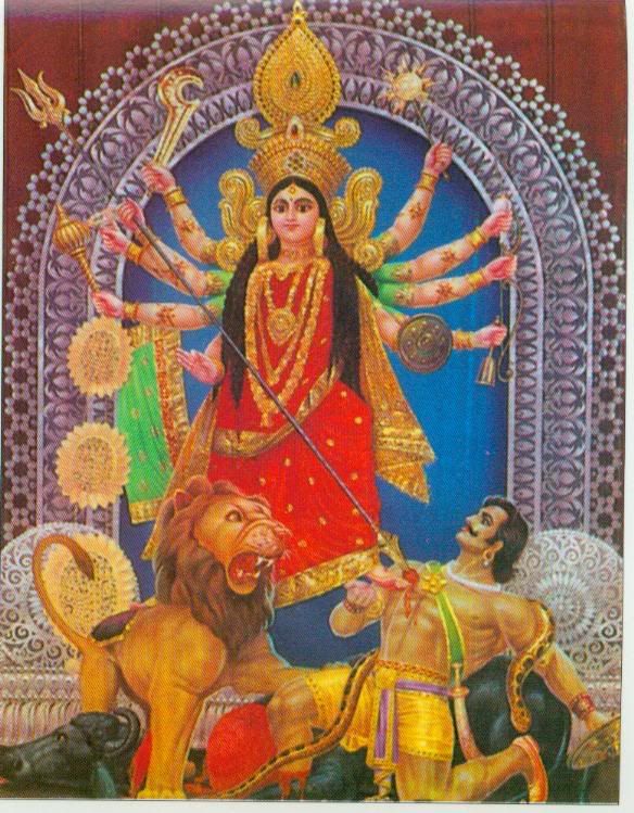 Goddess Kali as Mahishasuramardini as she kills the demon Mahishasura who took the form of a bull |