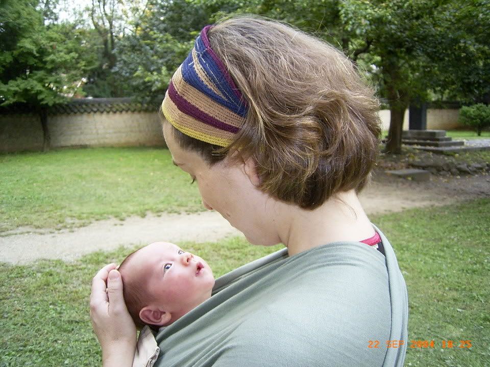 I have a friend who has a sign on her stroller saying "Don't touch the baby". A sling does away with needing that.