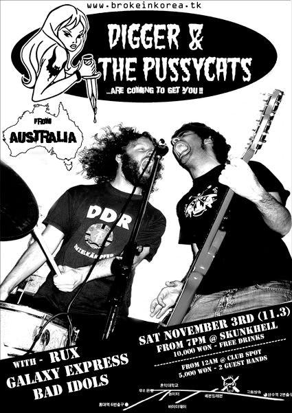 Posted: Sun Oct 28, 2007 6:15 pm Post subject: Digger & the Kitty Cats -Aus band in Gwangju & Seoul |