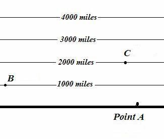 For example, if point A is in a plane, B is 1,000 miles above the plane, and C is 2,000 miles above the plane, we cannot necessarily conclude that C is further from A than B is...