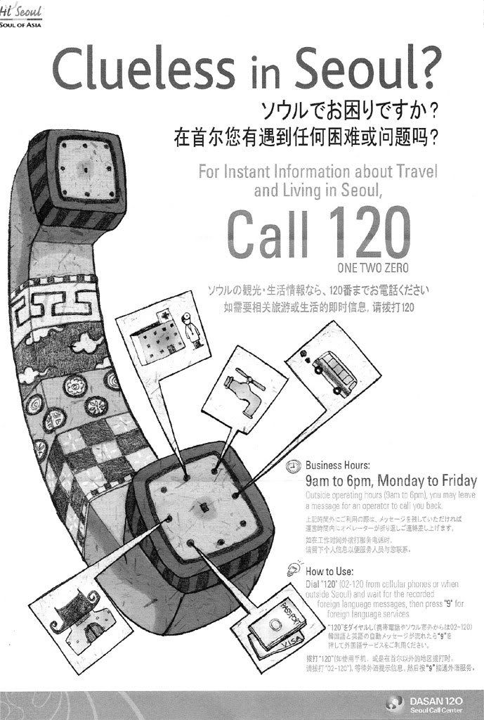 Posted: Sun Feb 10, 2008 11:51 pm Post subject: Are you clueless in Seoul? Seoul Help Center # |
