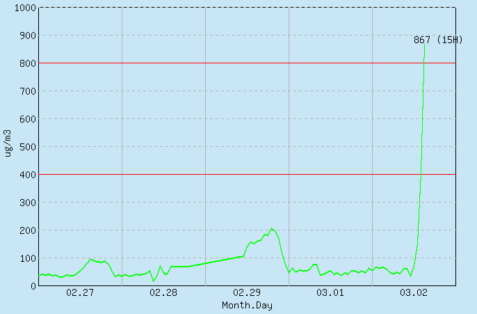Just looked at the nearest cities to me on the Korean Weather link and it was only about 200. Although Chupungnyeong further west was showing 550. So I might be ok, although my throat does feel a little gritty.