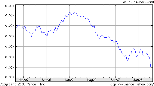 On 3-17-08, the won closed at 997.35 to $1 USD. Here is a chart that you can pull up.