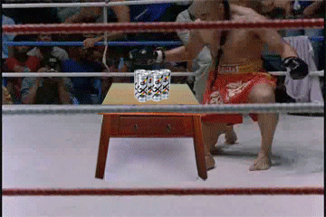 ...the small table supporting the silver cans filled with reddish liquid isn't part of the movie though. Laughing