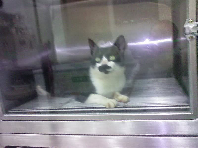 This cat a sweet cat that was rescued from the street after being attacked. Its leg needed to be reconstructed because it was almost completely torn off, but is almost fully healed! He has been living at the vet for about 5 months now,