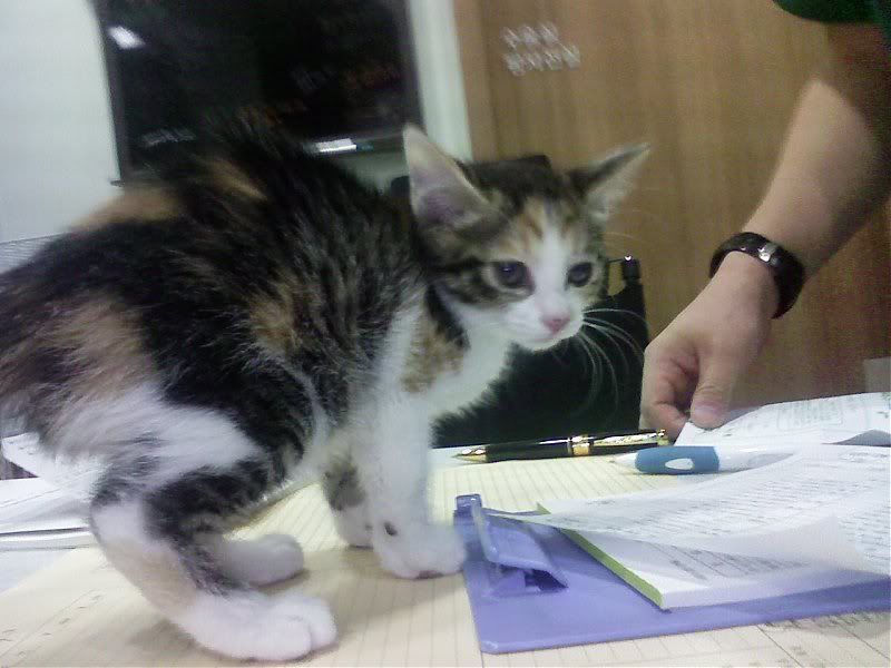 This kittie is about 10 weeks old and is looking for a home. I am not sure of the sex, but it is a wonderfully tame and sweet kitty cat.