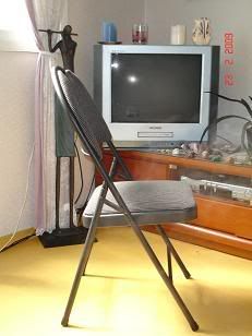 Black folding chair rarely used. Good to have for extra company. 5,000Won or best offer