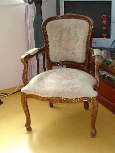 Two comfortable antique type ? armchairs. Brown stain on arms and legs is wearing off. 15,000Won each or both for 25,000 Won or best offer