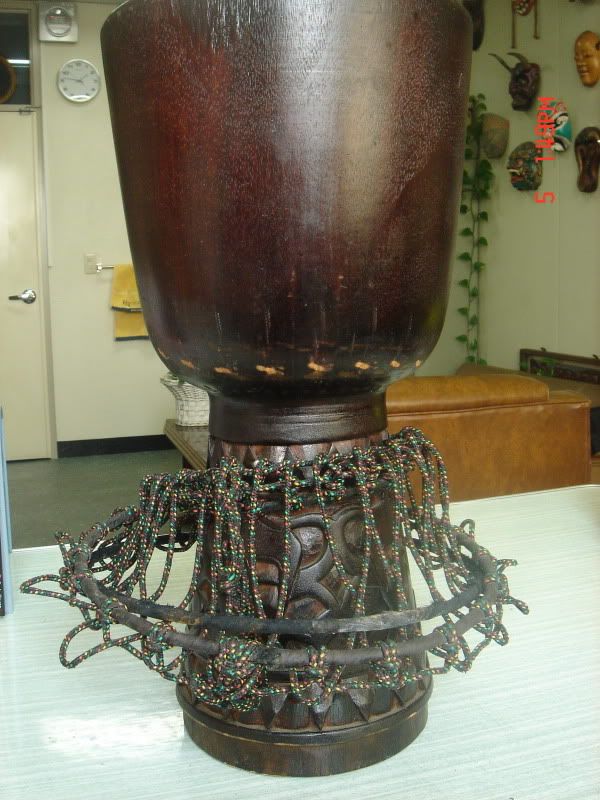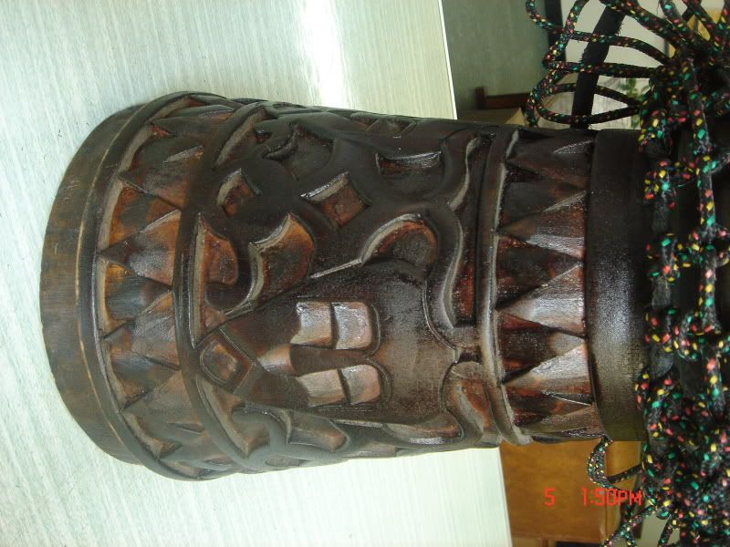 Also, a large Balinese Djembe drum, minus the head. Heavy, carved dark wood (possibly Mahogany?).