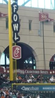 | The ball hits the right edge of the Chick Fil'a sign.. homerun or foul? |