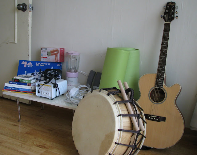 Looks like most are offline on vacation right now as I'm not getting any bites either. We'll probably have better luck in the latter 2 week of August with our going away sales. I like your guitar and drum, but like for you, they can't come with me. Guess they could be posted home. I'm posting a Jongu drum. I only hope my box makes it as 1 didn't make it 2 years ago. |