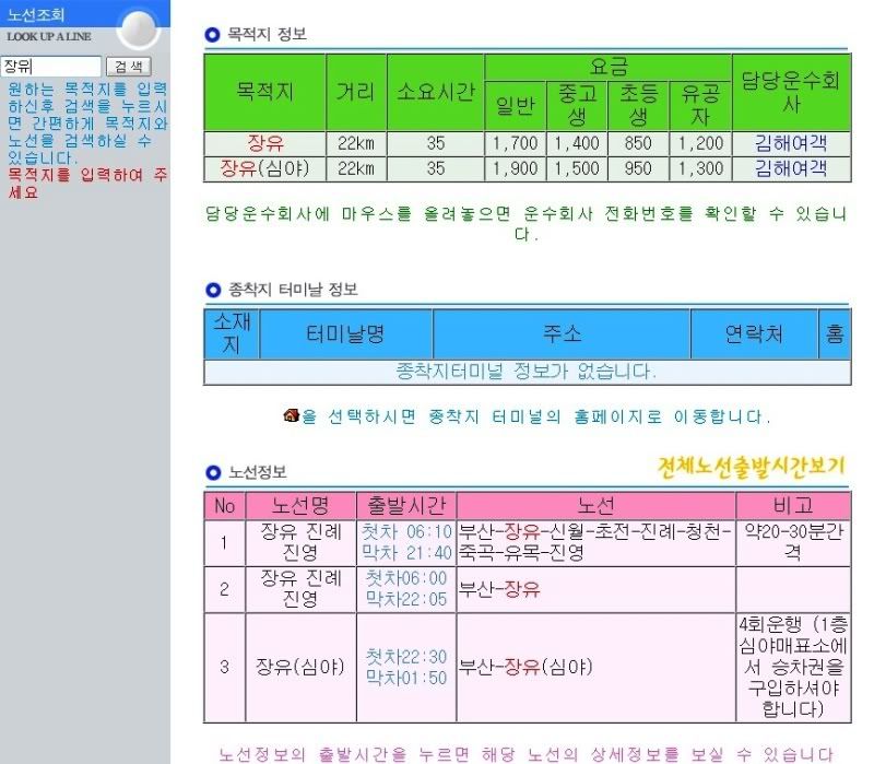 For example, it looks like Bus 127 runs from Gimhae to Gupo Station from 5:00 am to 10:40 pm every 10 to 12 minutes.