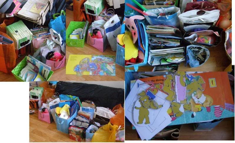 You will have largish pop-up books, cd's (or in files such as AVI, MP3, MPEG etc) video and audio (slowed songs and changed / processed video etc), coated stick things for puzzles & cards & matching; puppets, magnetic boards, heaps of ppt files, all and each of these comes with matching lesson plans/schedules ...