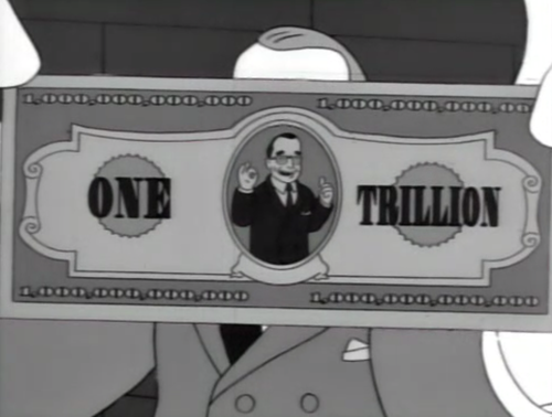 I thought it looked like this: http://3.bp.blogspot.com/_oWQREQfNq1Q/SxVUbj6pUiI/AAAAAAAAAg4/yMs1zEMiw6c/s1600/simpsons+trillion+dollar+bill.png