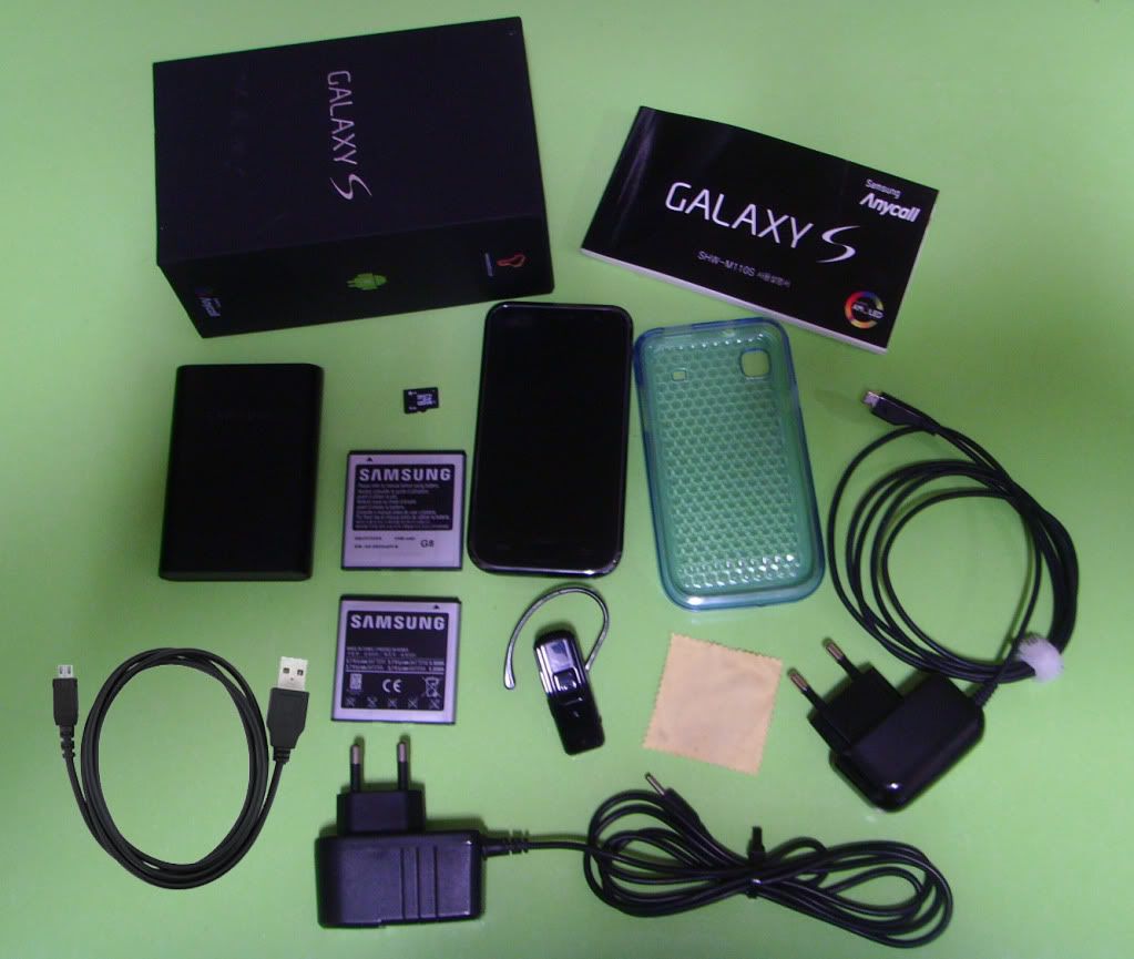 Comes with: Battery Charger, 2 Batteries, USB Cable, Phone, handsfree earpiece, USB adapter, 4GB MicroSD card and case