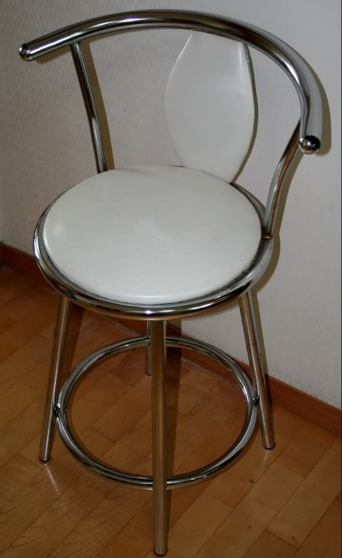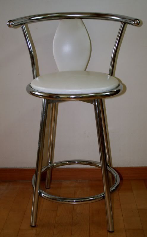 2 x stainless steel swivelling barstools. White vinyl covering. Reasonable condition. Should clean up OK. One seat has blue biro from toddler attack. Ideal for apartments with a breakfast bar.