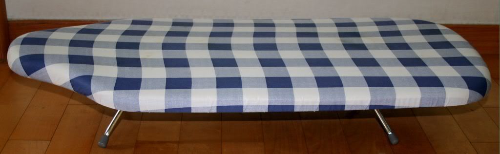 *Sold*Small ironing board. Excellent condition. Cover very slightly soiled, but can easily be removed and washed. Much easier to use than a full-sized board - just pop it on a bed or table and you're ready to go.