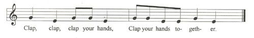 At the beginning of each class, greet each child in 4/4 rhythm. Say "Hello, Michael!" in even quarter notes.