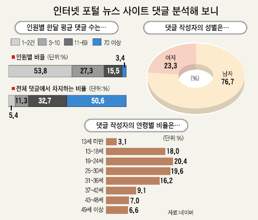 포털 0.06% '악플러', 댓글 25% 양산. |