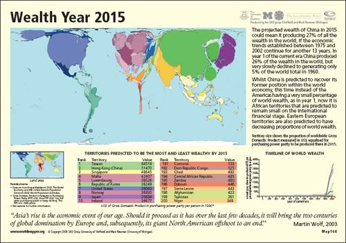 I like the way some countries are swelled and others squished to represent their relative economic clout. The visual representation is really helpful to realize the differences.