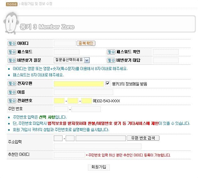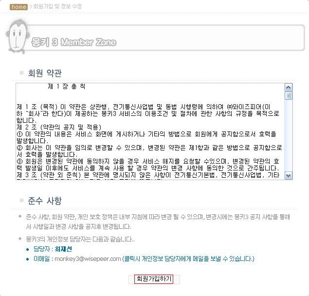 전자우편: E-mail address, 몽키3의 정보메일 받음(I'll get news letters from Monkey 3.)