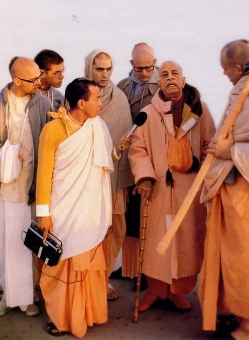 Sadly, Dr. T.H. Singh aka Bhakti Swarupa Damodar Swami [pictured holding the microphone in this circa 1974 photo...] who had been seriously injured in the grenade blast at the Krishna temple passed away over a week ago in his native Manipura. He was a wonderfully dedicated person who overcame poverty and the loss of both his parents in his youth to become a respected scientist and devotional scholar.