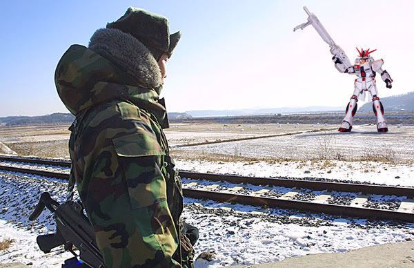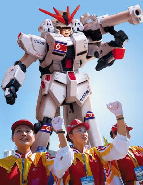 PYONGYANG, NORTH KOREA - Responding to mounting pressure and inceasingly confrontational rhetoric from the outside owrld, North Korean President kim Jong Il unfolded into a 70-foot-tall, 62-ton giant robot Monday.