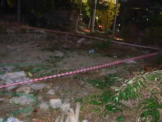 They must be breaking in and playing there at night, because there's a crew working there from early morning. That would also explain why there are so many of the pellets lying around, they couldn't see well enough to retrieve them at night. The pellets aren't a problem, it's just a dangerous place for kids to be playing, especially at night. They're not in school Sundays... I'm going to check if they're there right now. Bringing a can of whoop-ass with me, just in case they're armed!