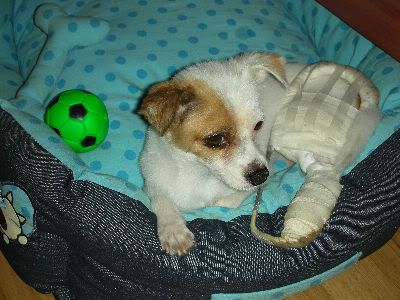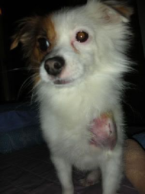 This picture is when I brought Samee home after a bone marrow transplant. The vets removed some bone from his front shoulder to fill in the bone laceration of his broken leg