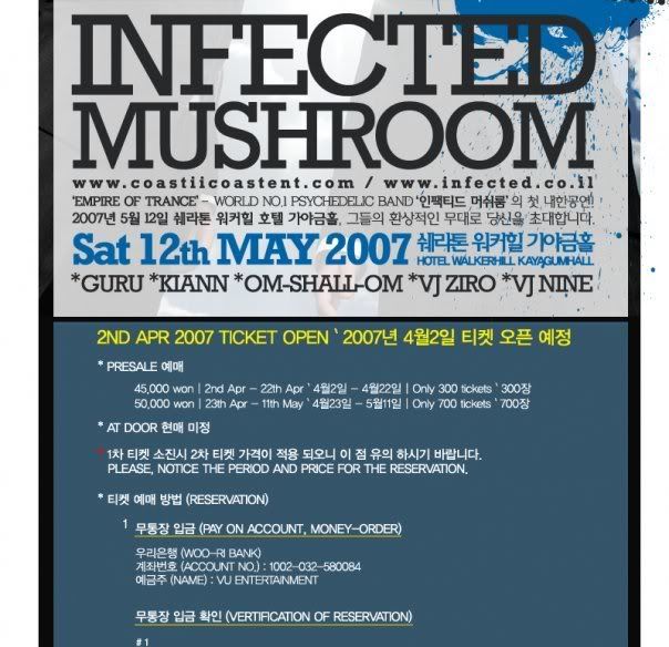 For instance, the upcoming Infected Mushroom show. So if you have a link or like a band that is coming to Seoul or anywhere in South Korea for that matter please feel free to post it here so we can keep each other informed of good music...