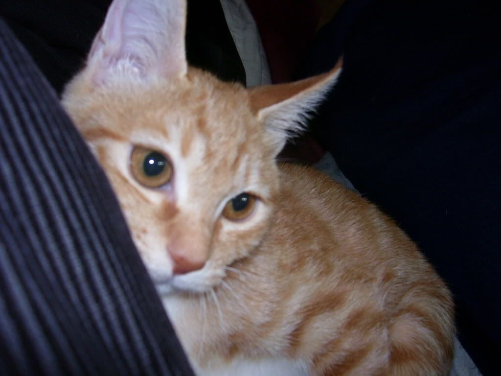 My school is lying me home, not to Korea. My kitten was a little fuzz ball when i stole her from her mommy, and boy did she bite te crap outta me when she was little.