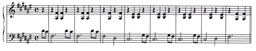 This, too, is in the key of F#. It is all on the black keys except for the E#'s.