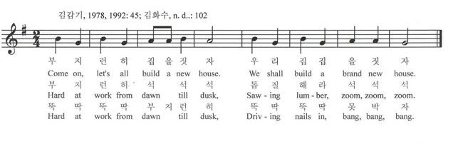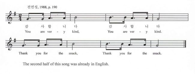 There are lots of Korean children's songs which could be easily translated and used in the English class.
