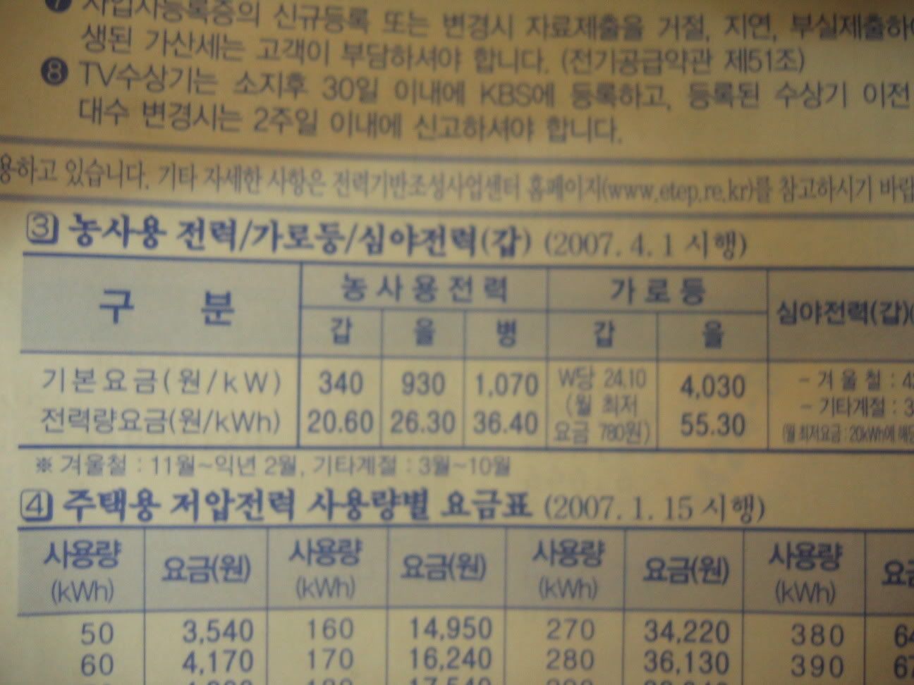 This is on the back of my electricity bill. I understand section 1: won/kwh for each kwh used...but the rest is a mystery! Am I correct in assuming that if I use over 1,000 kwh / month I have to pay nearly 500,000 won?! I live in a small apartment. This looks ridiculous.
