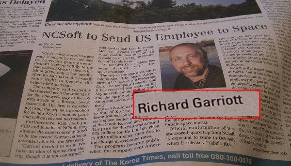In the computer game world, Richard Garriott is a super star. One would not describe him as a simple employee of a Korean software company. Further, Garriott would be funding his own trip with maybe some promo deal with NCSoft. The headline writer presents a rather distorted picture, making it seem like a Korean software company is going to send a lowly employee into space. |